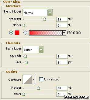 Шаг 1 Создаем новое изображение размером 294х167 пикселей (цвет фона - черный), на котором пишем белым цветом слово Lights. Шаг 2 Затем создаем новый слой, выбираем инструмент Brush Tool с параметрами: size = 3 и hardness = 85% и цветом #e73101 начинаем рисовать как бы обводку нашего текста, после чего можно удалить те места, на которых расположен сам текст. У вас должно получиться примерно так, как показано на рисунке ниже. Шаг 3 Выбираем Blending Options..., а затем Outer Glow с параметрами, как на картинке ниже. Шаг 4 Выбираем инструмент Brush Tool с параметрами size = 2 и hardness = 0% и цветом #e7c05b начинаем рисовать точки по центру на всем нашем тексте. Результат - на картинке!